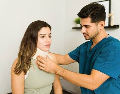 In prima battuta di solito il medico consiglia di stare a riposo e ricorrere al collare cervicale.